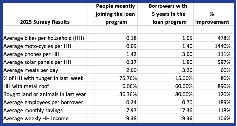 In June 2025, 261 members (10%) of the participating VSLA groups in Yumbe were interviewed to assess the project’s impact. The survey results show a strong and growing demand for affordable capital, with several borrowers now in need of larger loans (USD 1,000 or more) in order to expand their businesses.